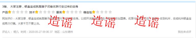 辟谣专用点评了银盒宝成:辟谣3楼:银盒宝成和优享付没有任何关系,请别乱泼脏水。