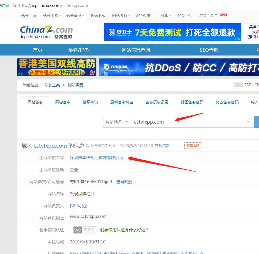 还有我今天要撤底的揭发湖北多酷网络科技有限公司极刷支付的骗局,他们所说的中央台推荐并打广告全是假的。真实的情况是请深圳市华信动力传媒公司拍了个视频。二万块钱,放了个中央台的台标。而深圳华信只是一个发现栏目普通的广告代理而已,所谓的中央台官方网站不是中央台的。大家请看下图。