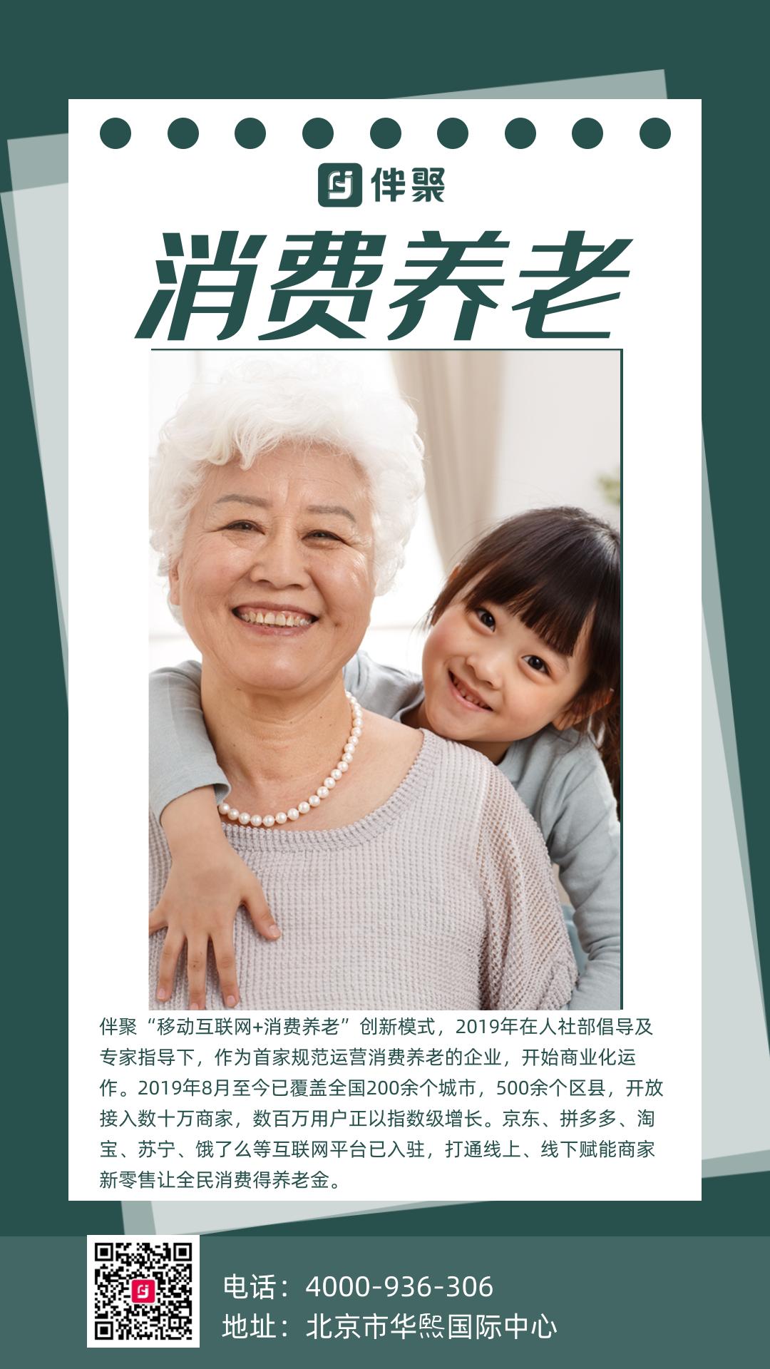 伴聚已覆盖全国200余城市、数十万商家,首家规范运营消费养老,品牌价值行业第一!京东、淘宝、拼多多已入驻,线上线下同享优惠“零成本”得养老金!国有商业银行存管,退休年龄支取。咨询热线4000-936-306
