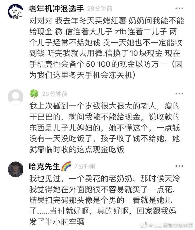 网友去菜市场买菜,结账时习惯性的掏出手机扫码支付,卖菜的大爷唉声叹气地说,又是个扫二维码的,能不能给现金呢?