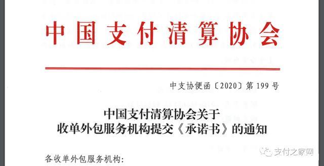 支付之家网(ZFZJ.CN)支付之家网获悉,为进一步加强收单外包服务机构备案管理,提高外包机构合规经营意识,有效防范网络赌博、电信诈骗等违法违规经营业务行为,中国支付清算协会发布《关于收单外包服务机构提交《承诺书》的通知》(中支协便函[2020]第199号)。