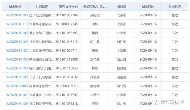 支付之家网通过收单外包服务机构备案系统获悉,目前仅11家公司获得了“聚合支付技术服务”备案,分别是:
