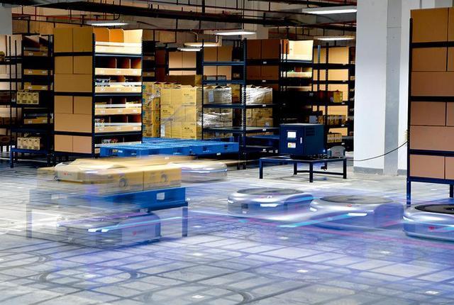 河南保税物流中心,分拣机器人进行包裹分拣工作(2019年1月14日摄) 李嘉南摄/本刊
