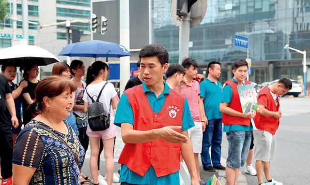 2018年夏季,快递小哥柴闪闪在上海火车站南广场恒丰路口做文明出行的指路志愿者
