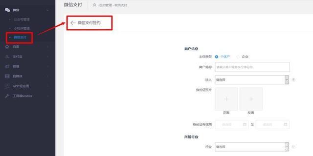 但是由于费率的关系,推荐商家配置原生支付,微信小程序商城就配置微信原生支付,先在智慧链接->微信支付中签约微信商户号。
