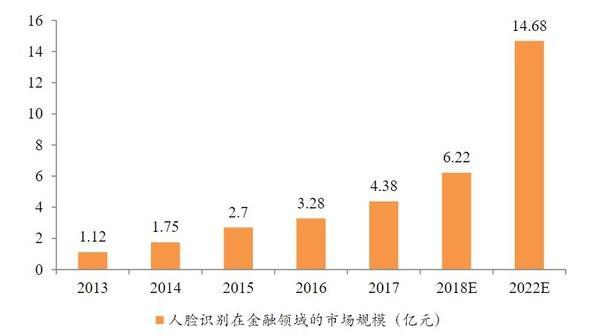 金融领域的人脸识别,主要分为身份核验和场景规模化应用。身份核验,也称1:1刷脸,主要用于互联网金融、银行的远程开户、远程身份认证、远程支付;场景规模化应用,也称1:N刷脸,出现于百姓的刷脸支付、刷脸取款等日常生活场景。据前瞻产业研究院数据显示,中国2022年人脸识别在金融支付领域的市场规模将达到14.68亿元。从2020年开始,刷脸支付进入为期三年的黄金时代。