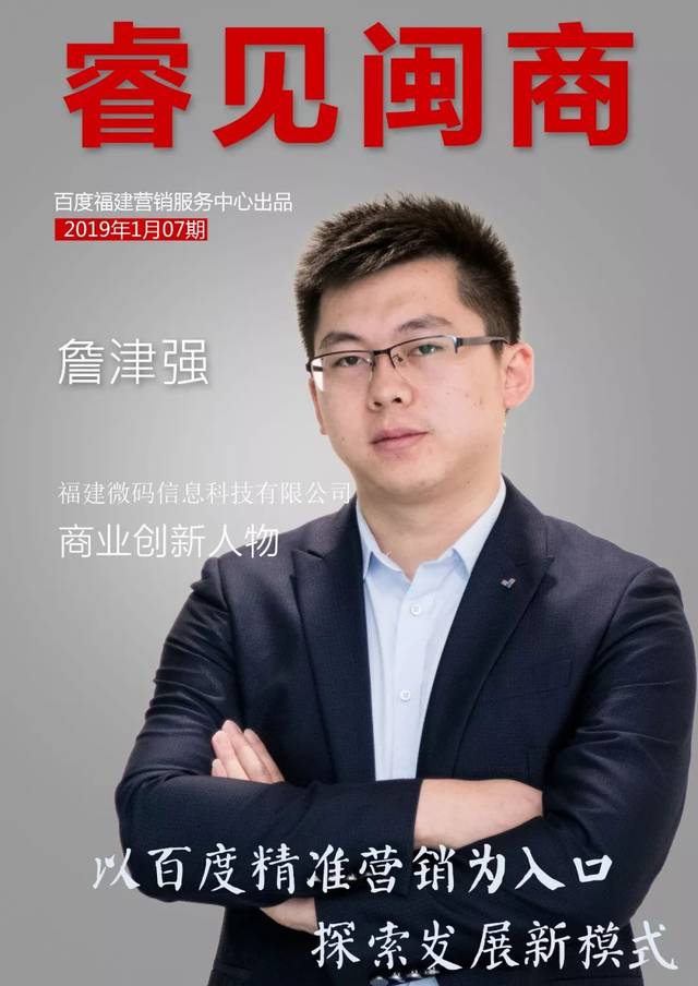 【导读】“《睿见·闽商》2018福建省第二届品牌影响力”总评榜项目评选活动拉开帷幕。本次评选活动由百度联合福建推出,旨在聚焦于闽商精神,为闽商品牌发声,与闽商企业家们共同开创全新商业生态,让全省乃至全国见证闽商独特的品牌影响力。今天,我们有幸近距离接触福建地区优秀闽商企业之一,“福建年度商业创新人物”,福建微码信息科技有限公司总经理詹津强先生。