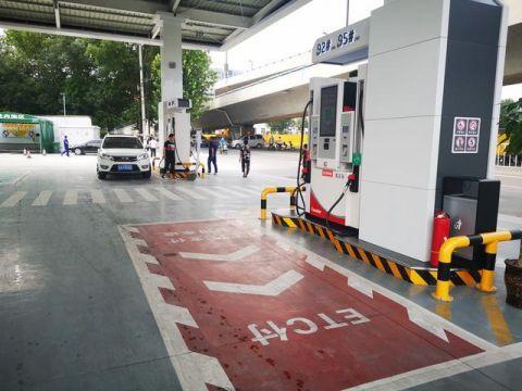 记者注意到,与其它加油站不同的是,该加油站地面上标注有“车牌支付”和“ETC支付”专用车道,有加油员在现场引导加油。