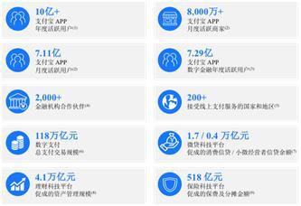 目前,支付宝连接了国内超10亿用户和超过8000万商家。与蚂蚁集团合作金融机构超过2000家。