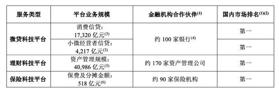 在微贷科技领域,蚂蚁首创无担保纯信用贷款,先后推出网商贷、花呗、借呗等,也与约100家银行业合作伙伴合作。截止到6月30日,按平台促成的贷款余额规模计,蚂蚁是中国最大的线上消费信贷和小微经营者信贷科技服务商。