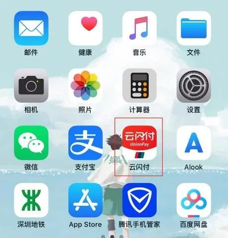 在手机桌面中,点击“云闪付”APP图标。