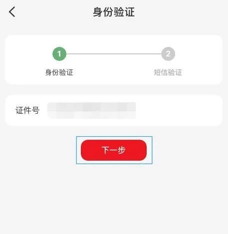 在“身份验证”的页面中,输入身份证号码,点击“下一步”按钮。