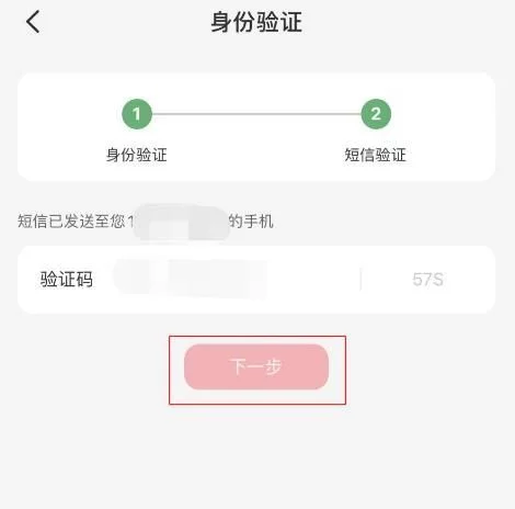 在“短信验证”的界面中,输入收到的短信验证码,点击“下一步”按钮。
